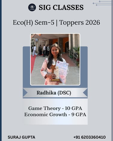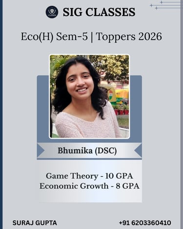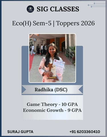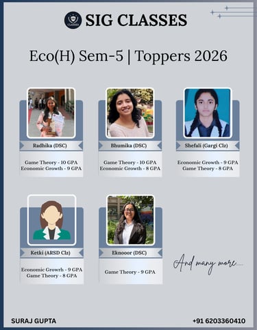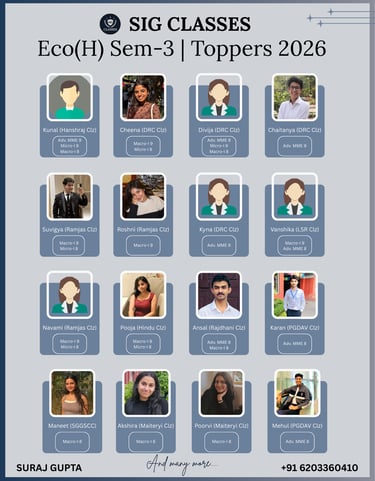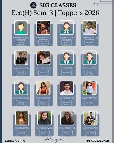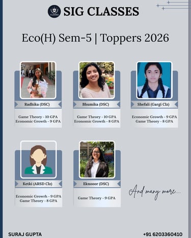 SIG CLASSES is a premier online coaching institute dedicated to empowering Economics Honours students, with a special focus on those enrolled at Delhi University. We provide expertly designed courses that cater to the academic needs of undergraduate students, ensuring conceptual clarity and strong exam performance.